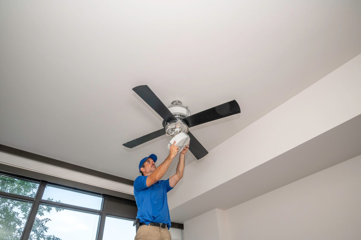 Because of the sheer difficulty of a ceiling fan’s location, there is complex wiring involved, so most people turn to an electrician instead of attempting to do it themselves.